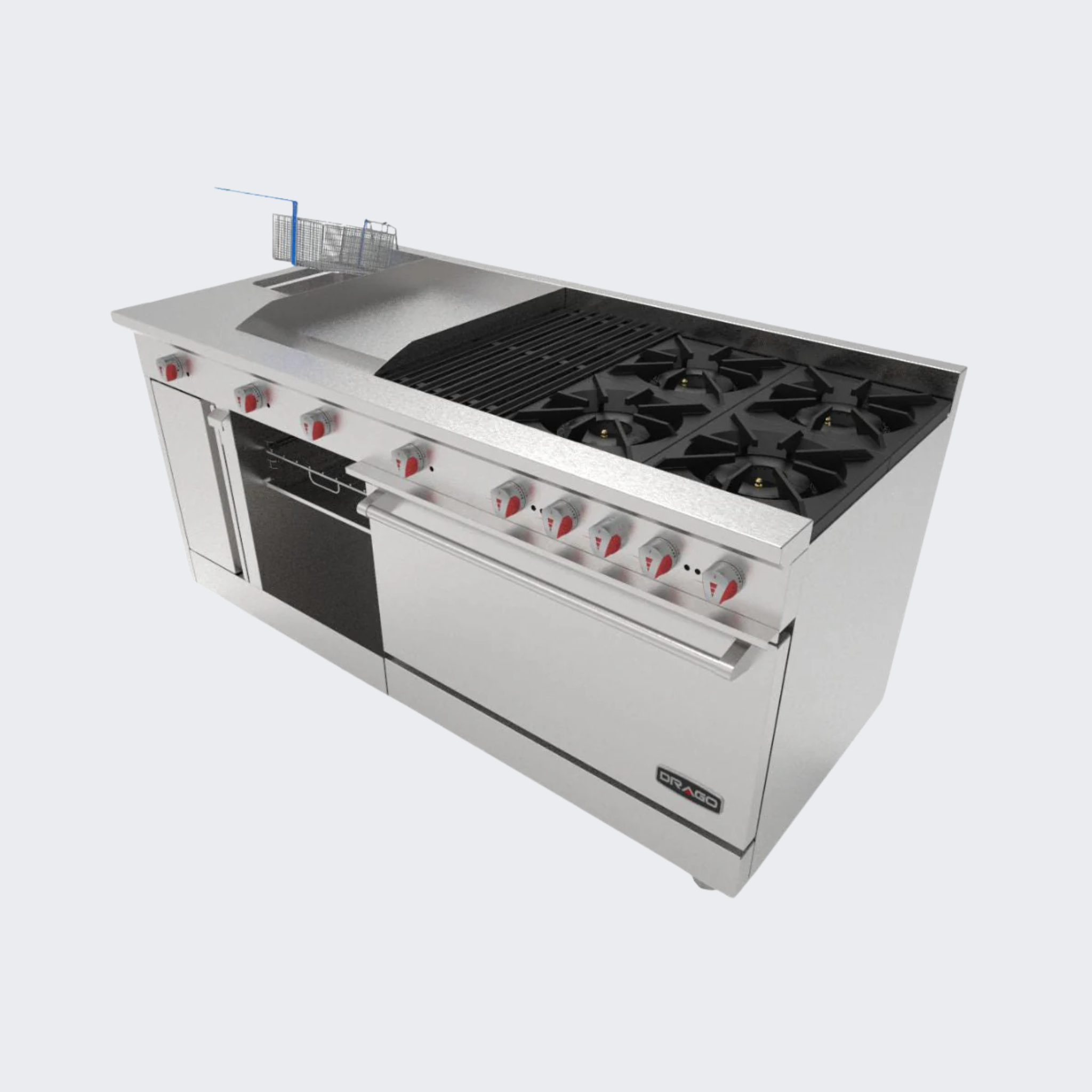 Drago | Estufa 4 Quemadores, Horno, Asador de 1 Pie, Plancha de 2 Pies, Freidora y Gratinador | UNIVERSAL PD | Nuevo