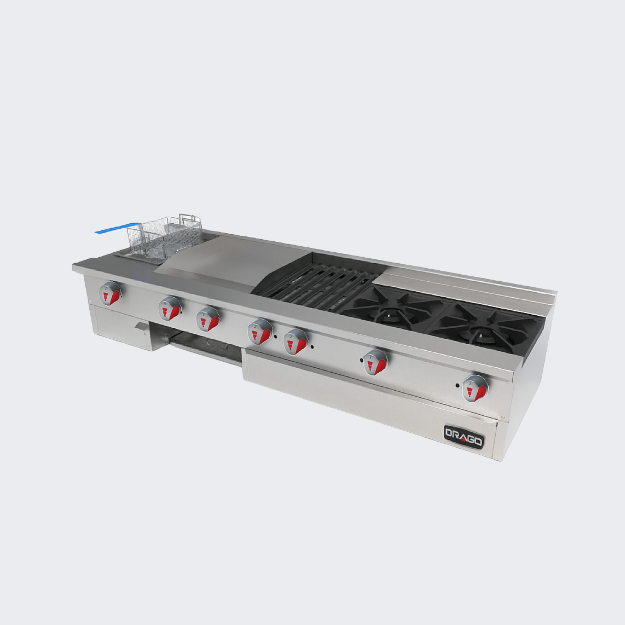 Drago | Estufa De Mesa 2 Quemadores, Freidora, Plancha, Asador Y Gratinador | UDM SLIM | Nuevo